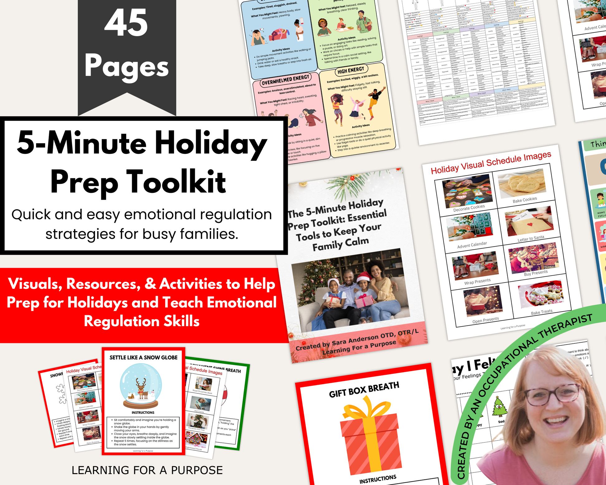 The holiday season is full of joy—but it can also bring big emotions, sensory overload, and challenging moments for kids and adults alike. The 5-Minute Holiday Prep Toolkit is designed to help your family prepare for these moments with quick, effective resources that teach emotional regulation skills in just minutes a day.