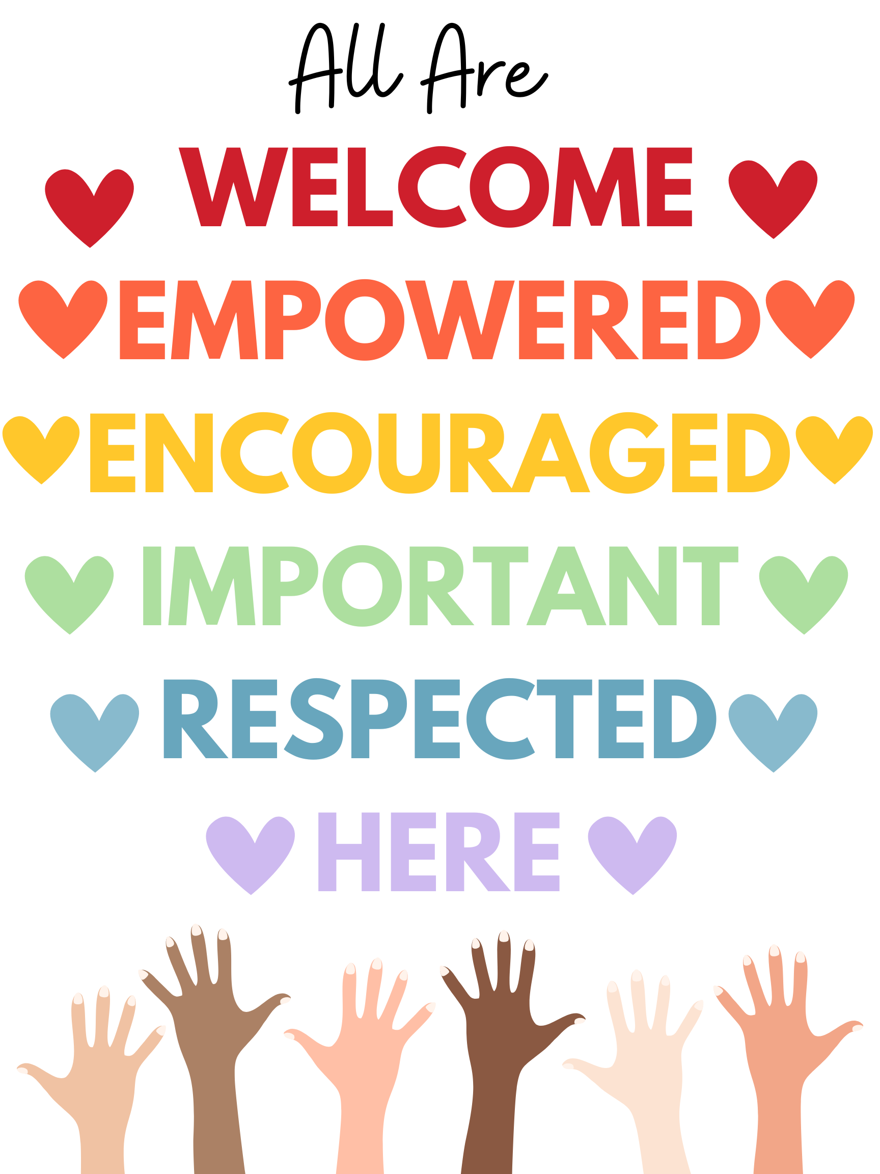 All Are Welcome, Empowered, Encouraged, Important, Respected Here