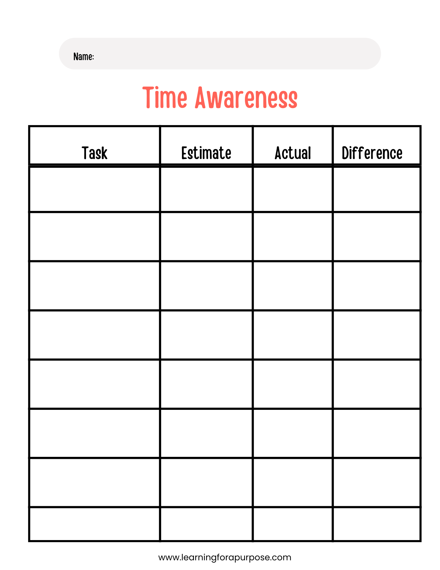 Time Awareness Tracker: This tool helps users estimate task durations, compare actual times, and improve time awareness over time.